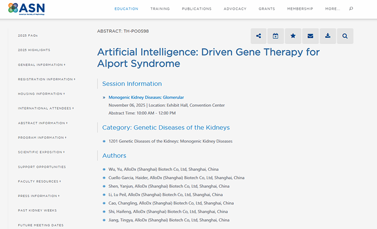 近日,全球肾脏病学领域最具影响力的学术盛会——ASN肾脏周(Kidney Week 2025)在美国休斯顿圆满落幕。作为引领全球肾脏病研究与临床实践的风向标,本届大会汇集了世界顶尖专家学者与前沿科技成果。继2024年甲基化与SRNS相关研究成果后,奥根诊断携两项前沿研究成果再度闪耀这一国际学术舞台。